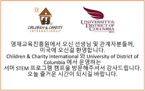 Ninety-six (96) STEM Educators from the Busan Metropolitan City Institute for Gifted Education of Seoul Korea visited Children & Charity International (CAC) Summer STEM Program. In collaboration with the University of the District of Columbia, School of Engineering and Applied Sciences (SEAS), a One-Day STEM Summit was held during which CAC students led by competent instructors enthusiastically participated in activities and shared quality learning experiences and projects with the visitors. This was truly a summer of learning and fun. View photos below: