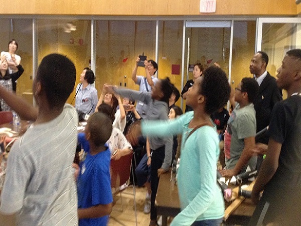 Ninety-six (96) STEM Educators from the Busan Metropolitan City Institute for Gifted Education of Seoul Korea came to the United States on July 27, 2017 and visited Children & Charity International (CAC) Summer STEM Program. Working collaboratively with University of the District of Columbia (UDC), School of Engineering and Applied Sciences (SEAS), a One-Day STEM Summit was held at the Van Ness Campus, on July 28, 2017. CAC students and instructors showcased some of the projects they worked on during the summer, and engaged the visitors in designing and building structures that could withstand an eathquake.